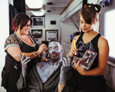 Using a combination of Special Effects Makeup, Pyrotechnic Effects, creating new and exciting (as well as the old school kick ass variety) zombies, Atmosphere FX, Mechanical FX, Explosions, Practical Elements, Blood sprays, Gore, Beauty Makeup and Hair, the show took on the look of a world gone wild, a post-apocalyptical nightmare. And the adventure continues with Season Two & Three!
